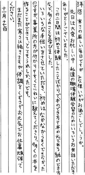 2006年11月14日(木)~15日(金)8:30~15:30、デザイン部3名、木太工場5名