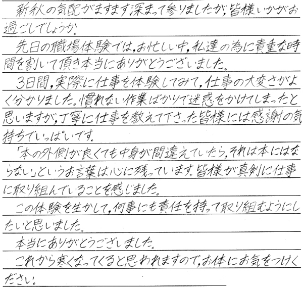 中学校「職場体験学習」
